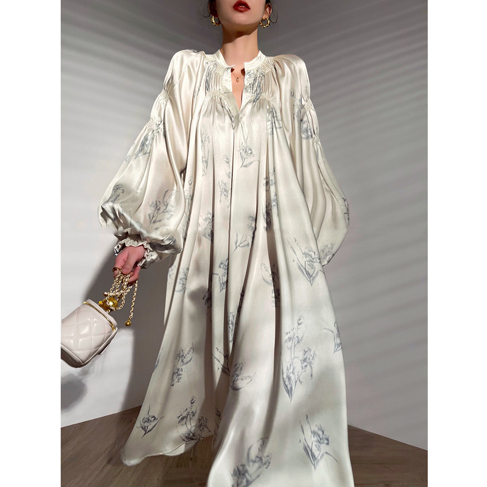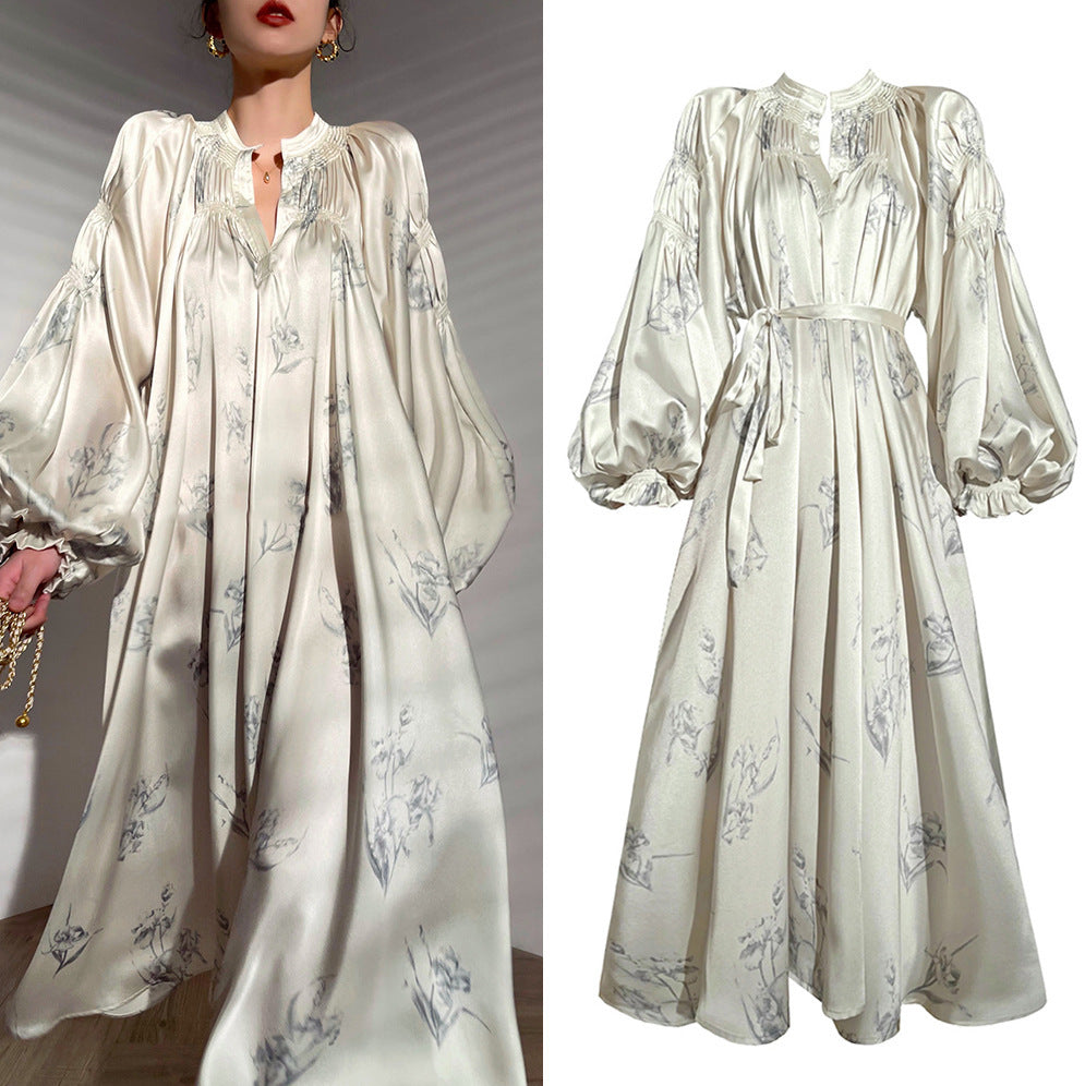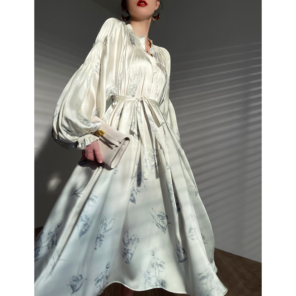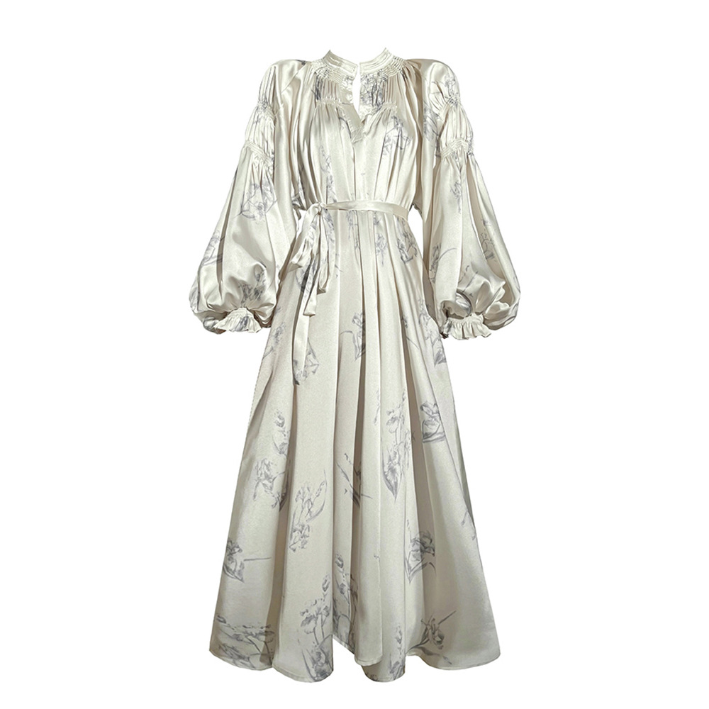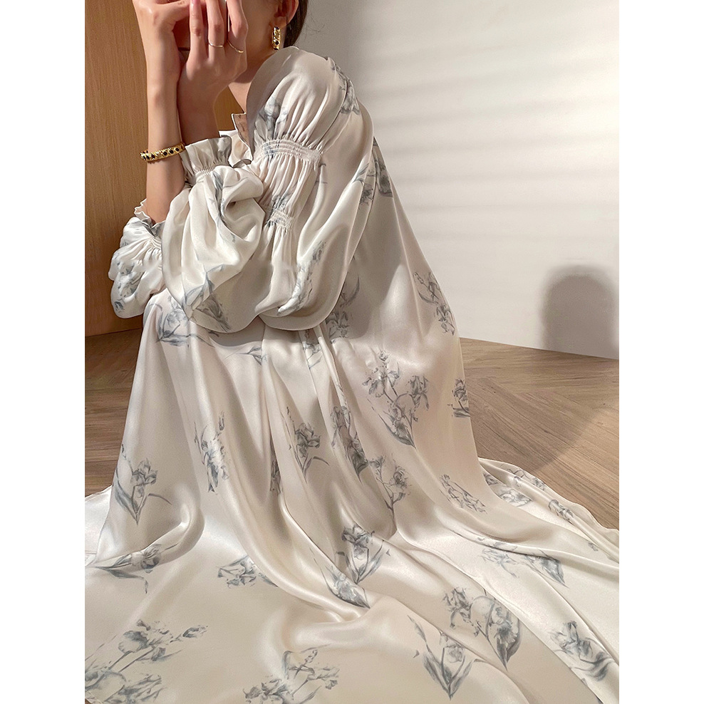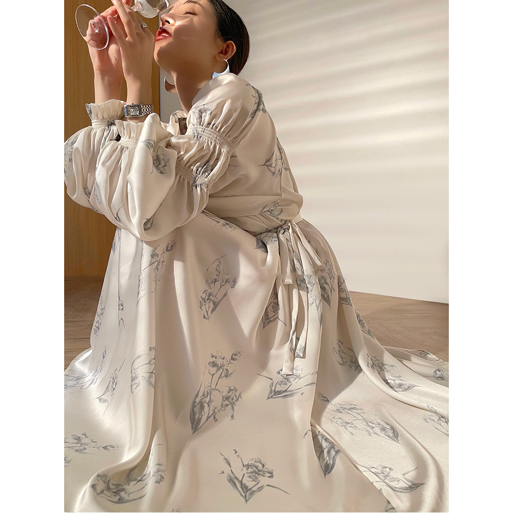 Waist Tightening And Slimming Long Sleeved V-neck Dress